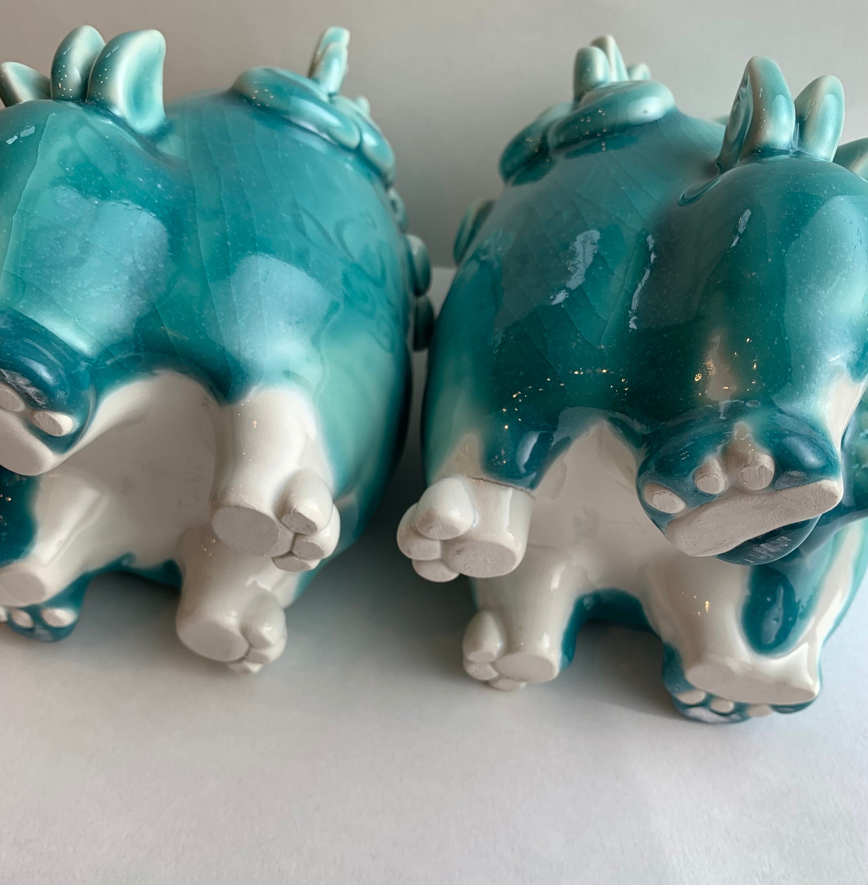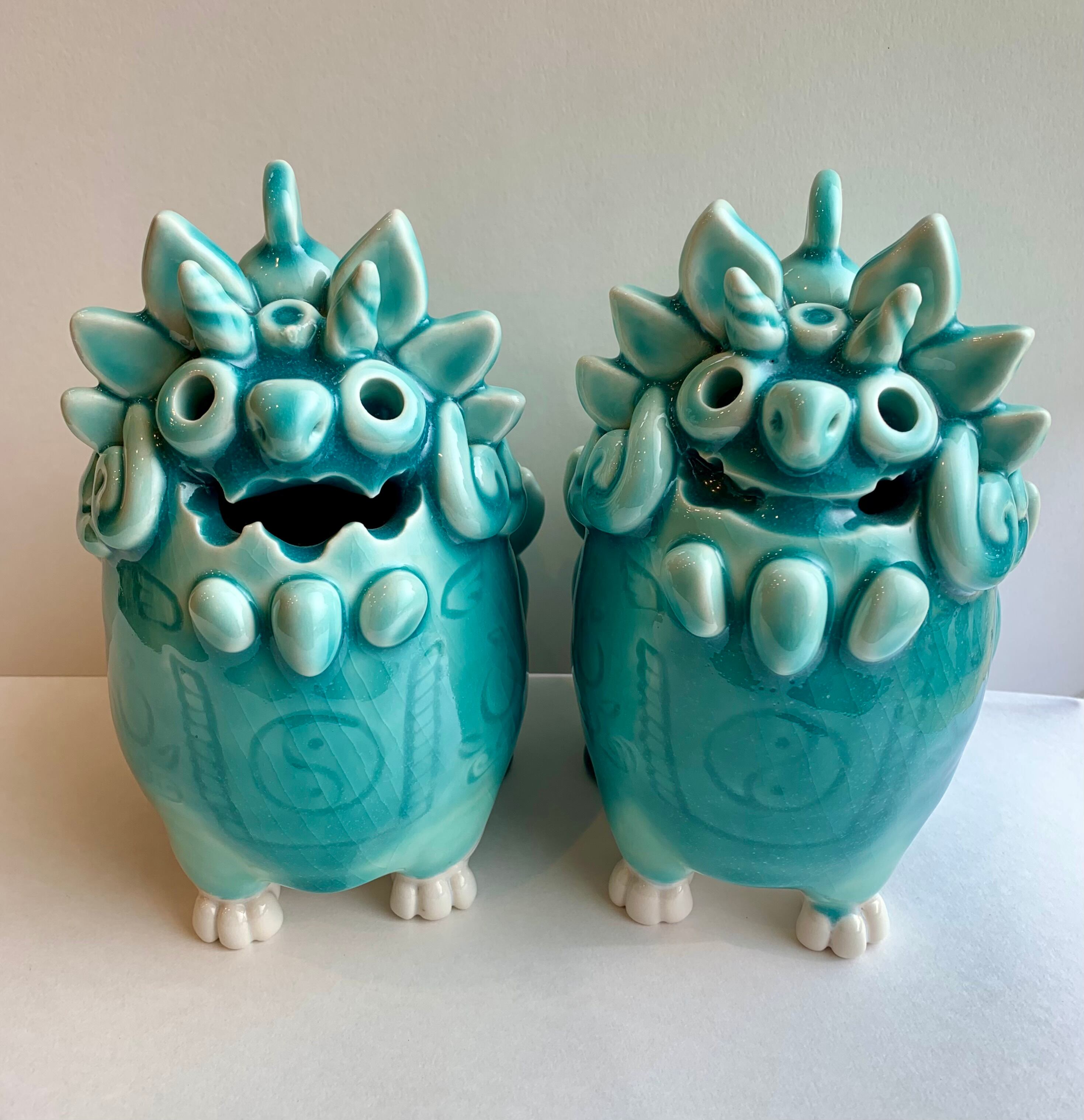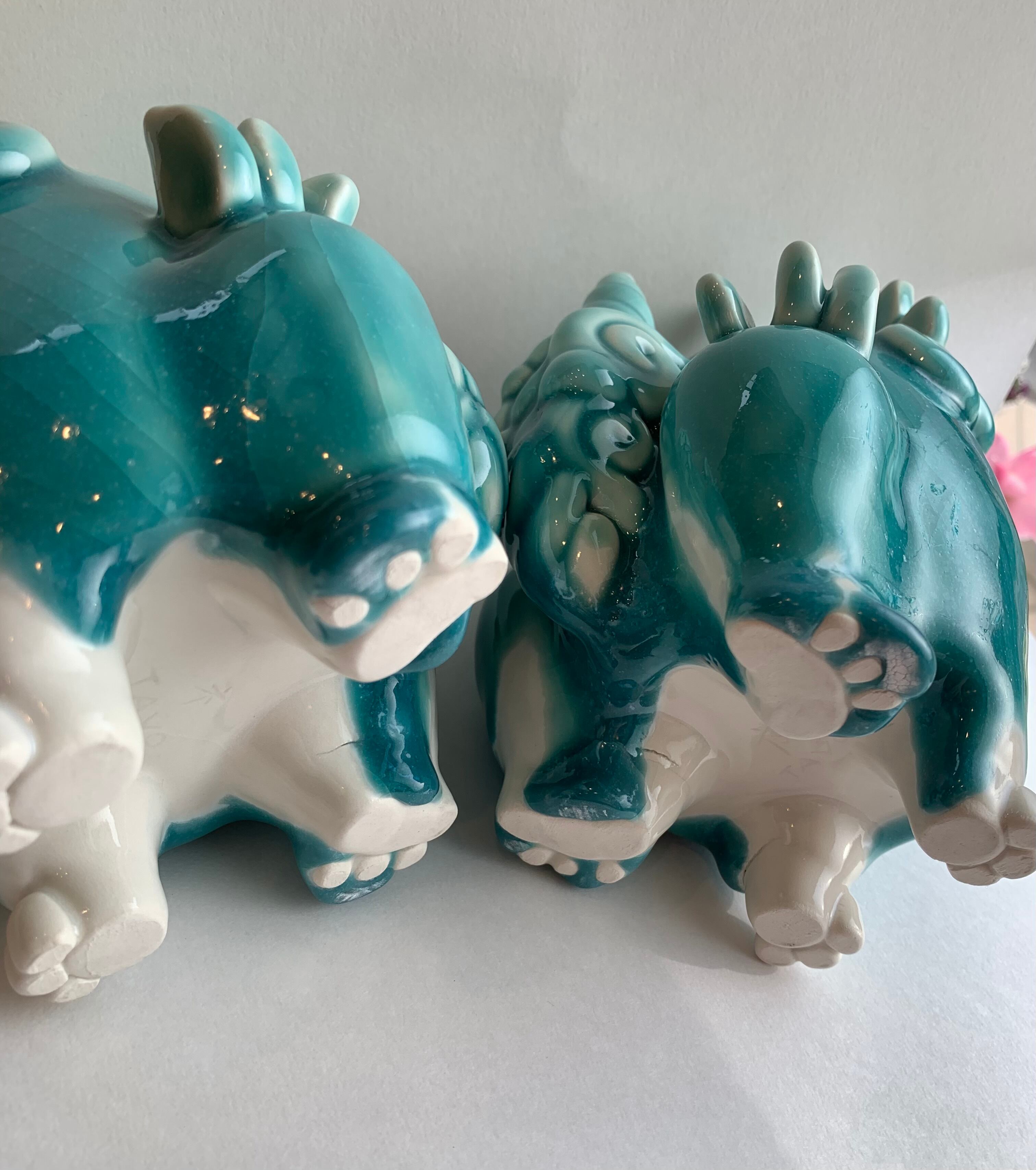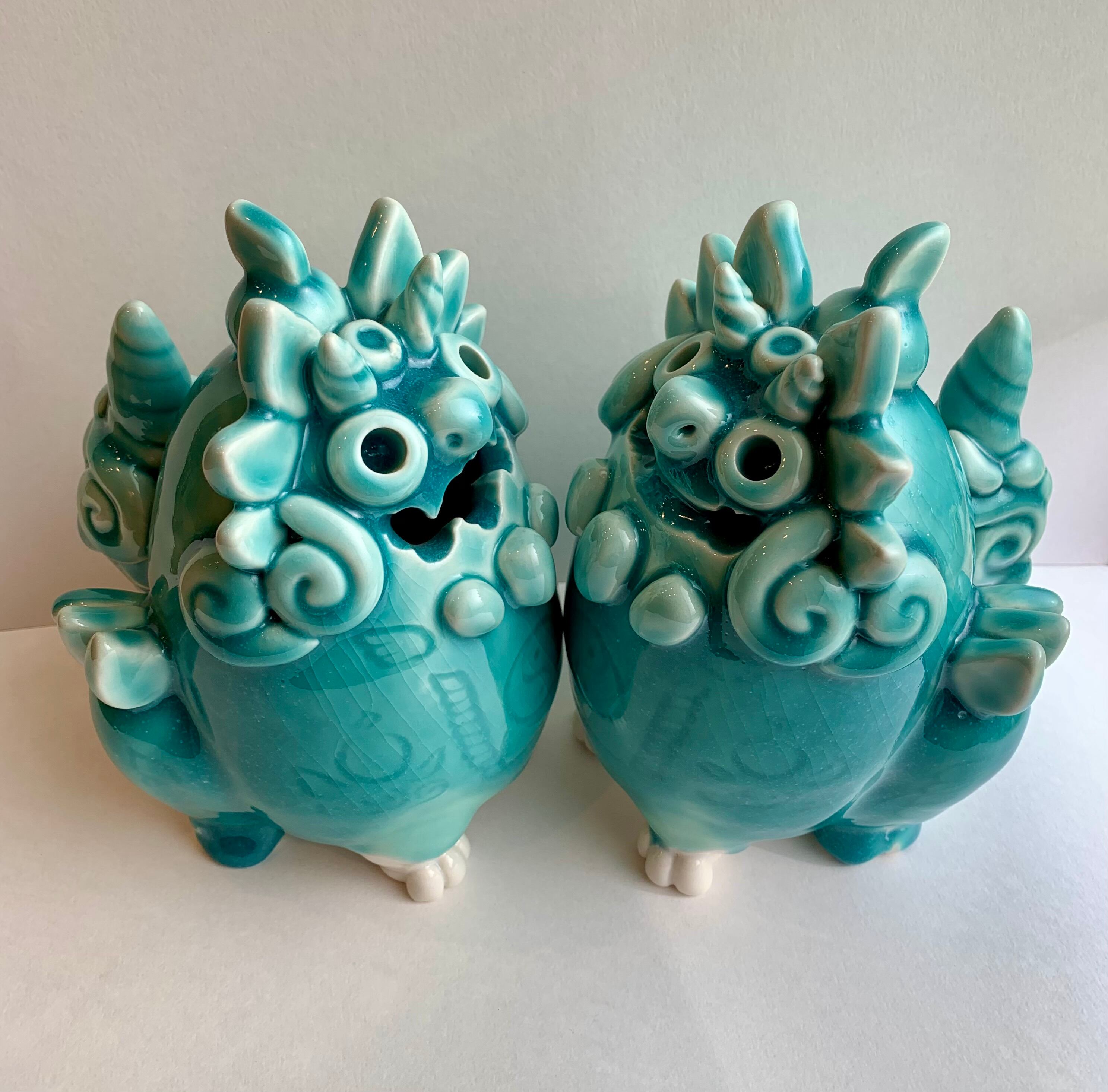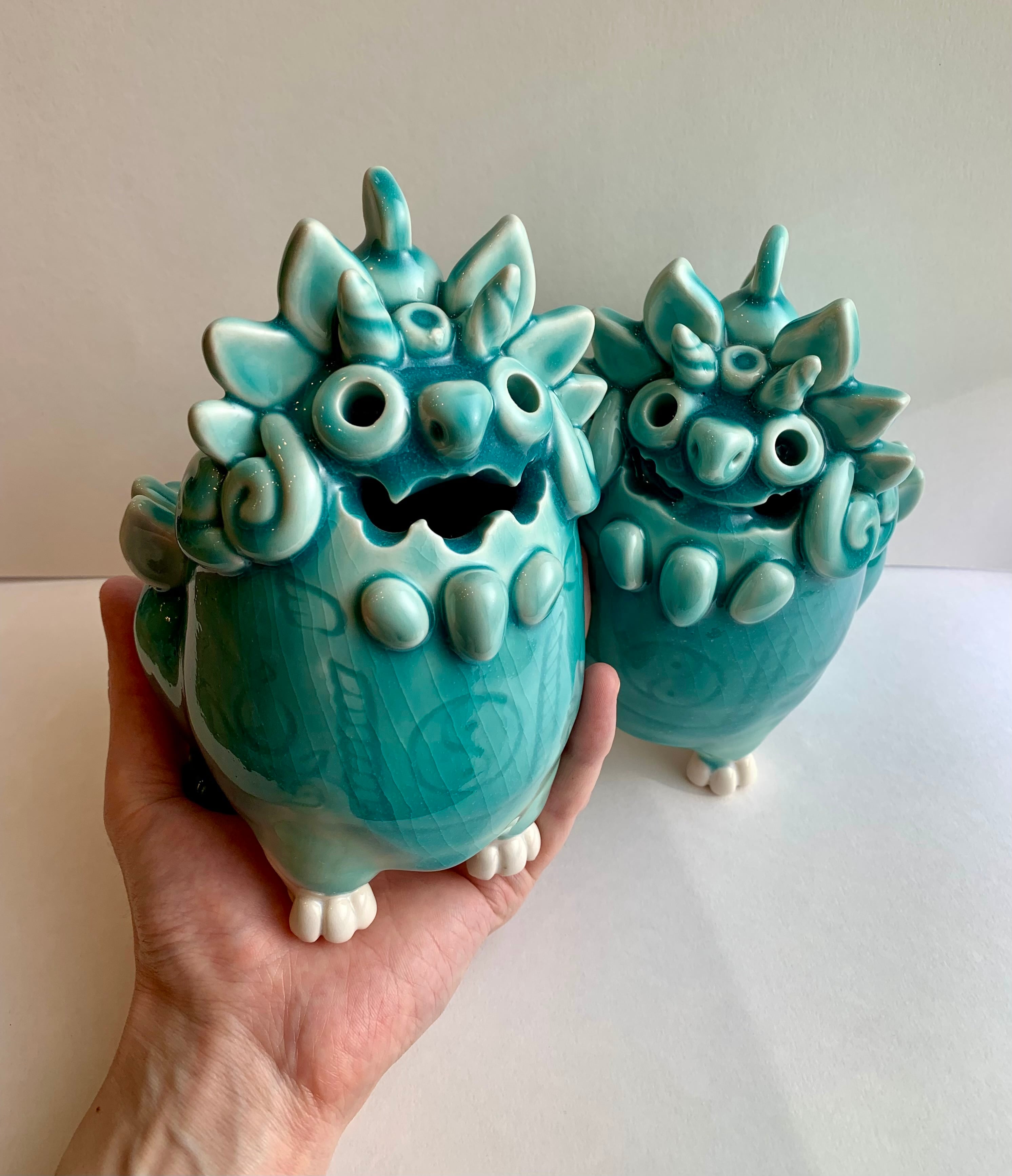 手づくりの陶製のシーサー2体